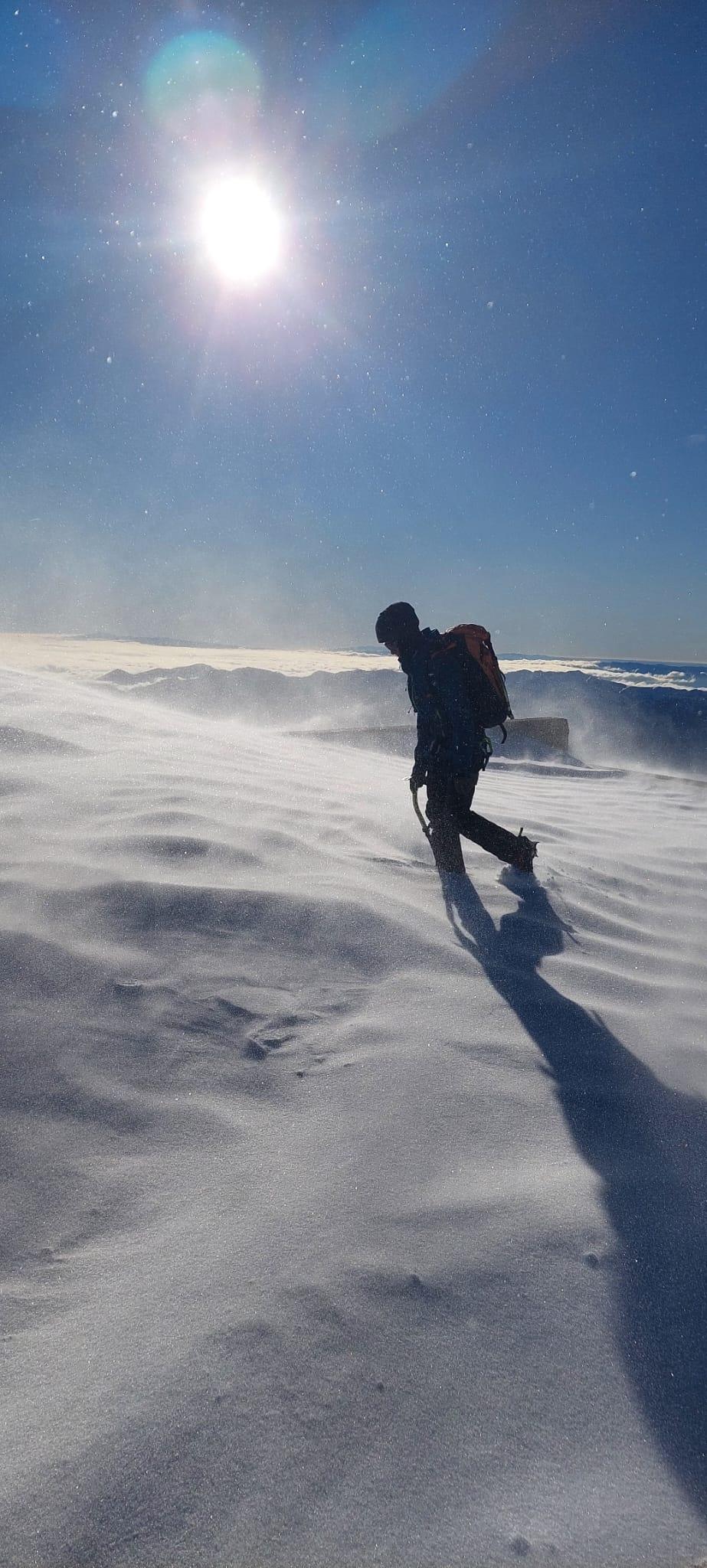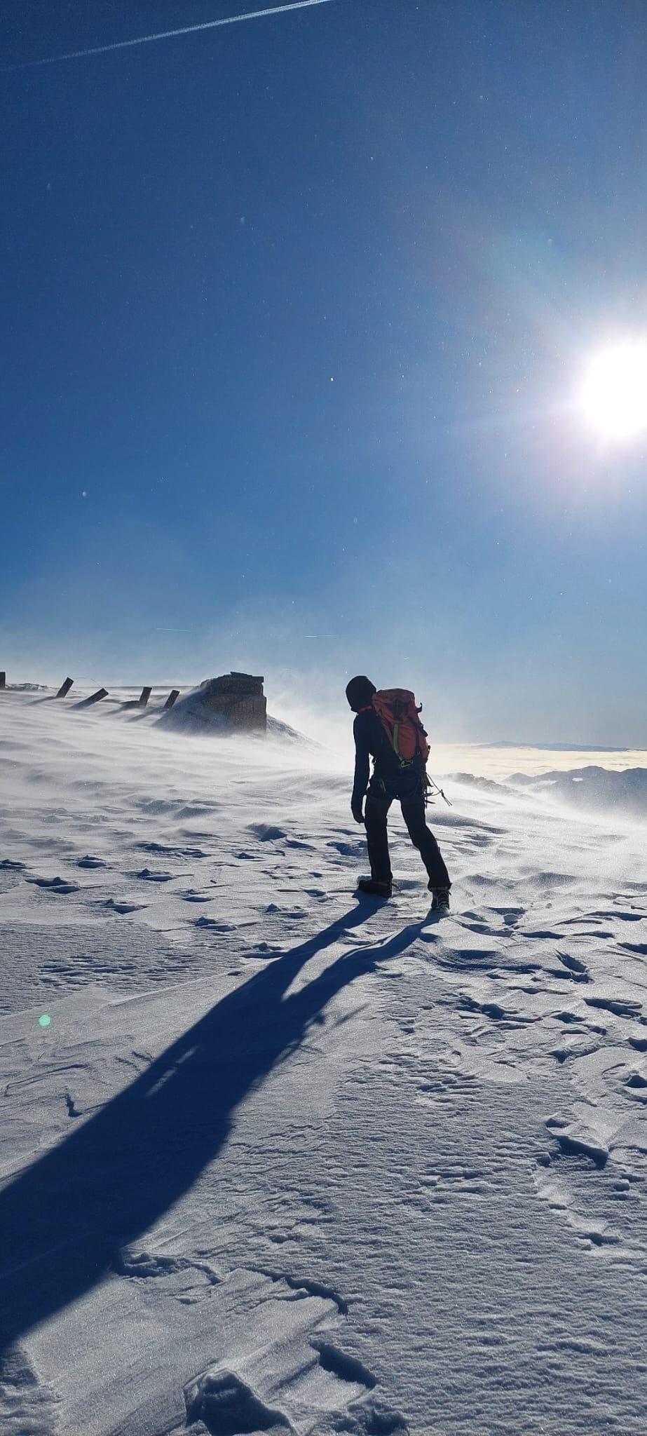 Štartamo ob 6:00 iz Krme gremo nek normalni tempo. Andrej pravi da bomo do kosila. Ustavimo se v koči na toplem čaju malo je že pihalo okoli 10H se veter zelo okrepi gremo iz koče ruzake pustimo dol se opremimo in gremo proti Triglavu. A še ne vstopimo v začetni del poti se je med tem veter zelo okrepil. Mojih 60 kg a je ta veter polegel na tla. Vkopljem se v sneg in Andreju z rokami sporočim da jaz ne grem naprej zato obrnem in grem proti vrhu Kredarice. Za mano pride še Simon ki se je znašel v podobni situaciji. Kasneje greva v kočo in čakava drugo polovičko skupine.